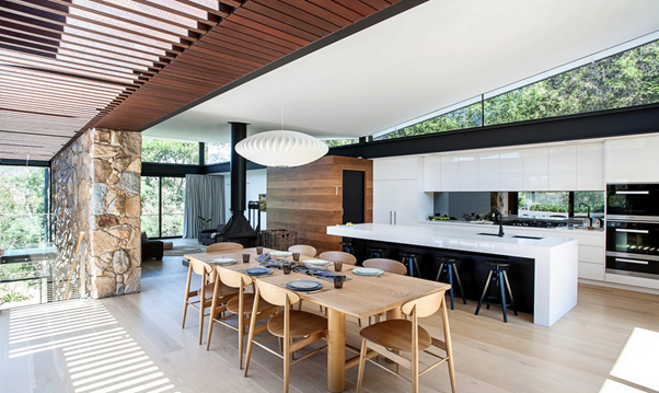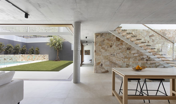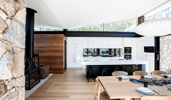 I promised months ago to show you another architect I’m investigating for our never never renovation. I’ve been looking at Alexandra Buchanan Architects. One of the reasons I like this architect firm is because it was started by a woman, and women have a pretty terrible time of it in architecture, as they do in many other fields. The designs are comfortable, bright and clean, and really well suited to our sub tropical climate, but I really like the designs that are more oriented towards a bush feel. In our back yard we have about 20 trees and palms, and it has a really cool, forested vibe out there. So I want to honour that look and feel, and include a lap pool at the back – I really enjoy swimming but the nearest public pool is a bit icky. Below are some examples of her work – all copyrighted to Alexandra Buchanan Architects, of course. The first three are of a house in Warrandyte, Melbourne. I love the mix of stone and wood textures and clever use of the butterfly roof line that enables a good clerestory window action. The final two are of a new build here in Brisbane. I love the use of white and natural stone, and the pale cement. We have plenty of room under the house to build – about 4 metres high, so I’m not worried about the light or anything. But like all good ideas, ours is super expensive as we need to upgrade the upstairs wet areas too. So this might be on the back burner for good! Argh.