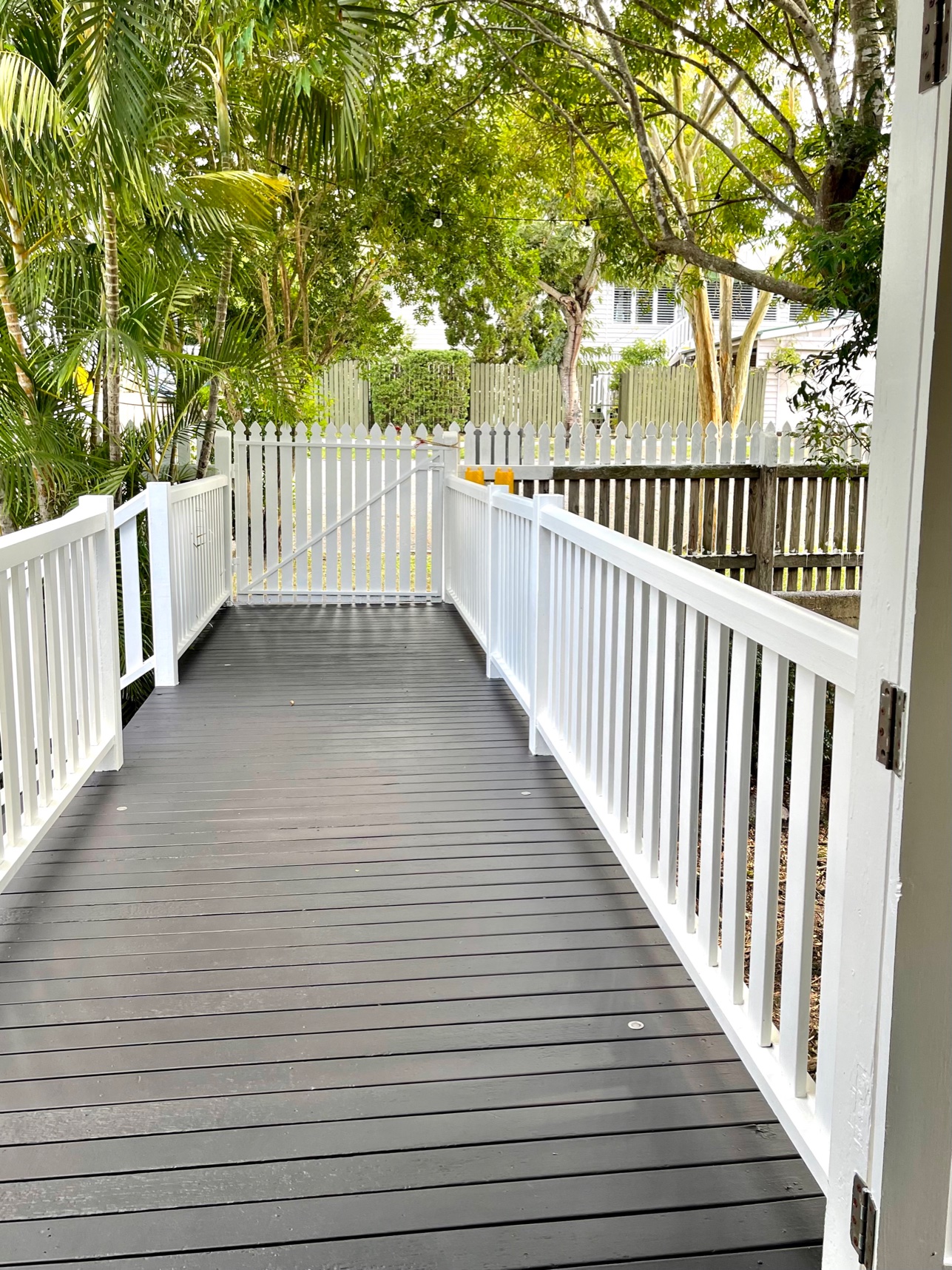 As I’ve said elsewhere on this blog, we’re not changing the main house colour just now – super exxie. And it’s still in good condition. But we can change the trim and accent colours. We used Dulux Klavier on the deck floor – it’s a lovely warm black with notes of purple and brown (should be called eggplant IMHO), and Dulux Natural White on all the woodwork. I can’t wait for the rest of the house to be trimmed out in these colours! We’re painting the front door a crazy pinky-lilac for shits and giggles. I think we’ll stop there – the Klavier already looks good against the Celery colour of the house and I cannot WAIT for the beige trim to begone (you can see it on the underside of the deck roof – so very meh). It’s fine on Arts and Crafts houses in, say, England or the US, but this house needs a lighter, brighter touch. We’ll get the silver paint onto the old window hoods too. I’m also rethinking my need to cover the ENTIRE front porch with plants…it looks so nice all bare. Gah! What am I thinking?! My hubby must never know that sometimes I like minimalist moments… 😉 In truth, it’s the best spot for herbs right there, with the most glorious afternoon sun.
